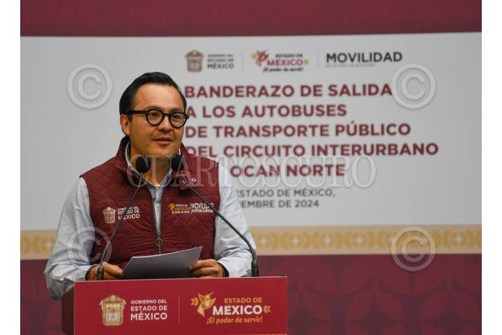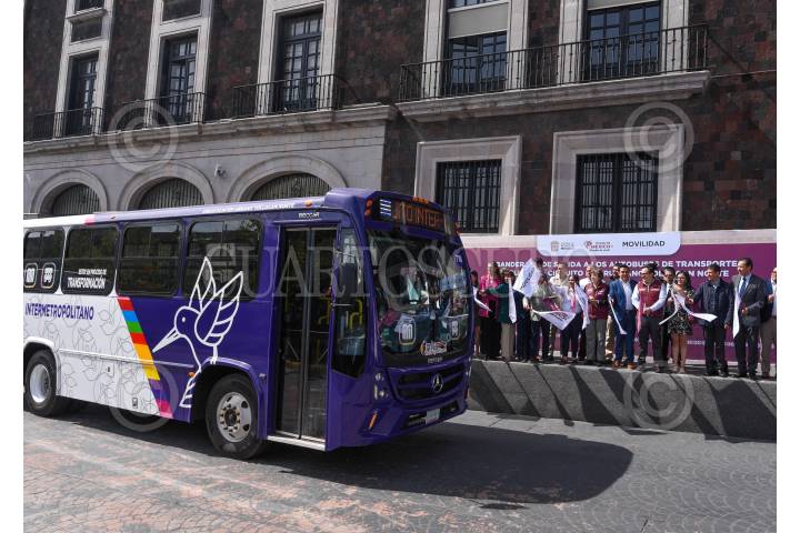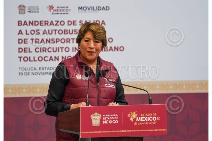 TOLUCA, ESTADO DE MÉXICO, 19NOVIEMBRE2024.- Delfina Gómez Álvarez, Gobernadora del Estado de México encabezó el banderazo de salida a los autobuses del Transporte Público del Circuito Interurbano Tollocan Norte de la empresa Intermetropolitano con tecnología Euro5. FOTO: CRISANTA ESPINOSA AGUILAR /CUARTOSCURO.COM