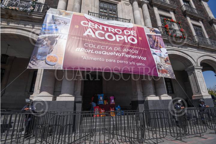 TOLUCA, ESTADO DE MÉXICO, 31DICIEMBRE2024.- Palacio de Gobierno del Estado de México fue habilitado como centro de acopio para recibir croquetas, aliento húmedo, camas, suéteres, cobijas y otros artículos que puedan mejorar la calidad de vida de perros y gatos en situación de abandono o que residen en albergues, estará abierto de lunes a viernes hasta el próximo 5 de enero y todo lo recolectado será entregado a protectoras de animales y Centros de Bienestar Animal. FOTO: CRISANTA ESPINOSA AGUILAR /CUARTOSCURO.COM