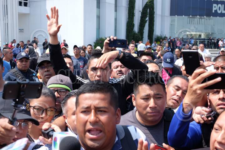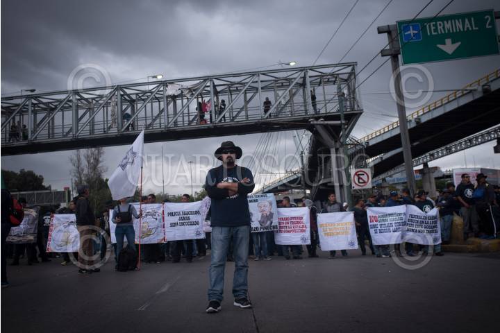CIUDAD DE MÉXICO, 13SEPTIEMBRE2019.- Integrantes de la Policía Federal bloquearon el Circuito Interior, el cual es uno de los principales accesos al Aeropuerto Internacional de la Ciudad de México, estos modo de protesta exigiendo ser indemnizados por la corporación policiaca al no aceptar ser parte de la Guardia Nacional. FOTO: PEDRO ANZA /CUARTOSCURO.COM