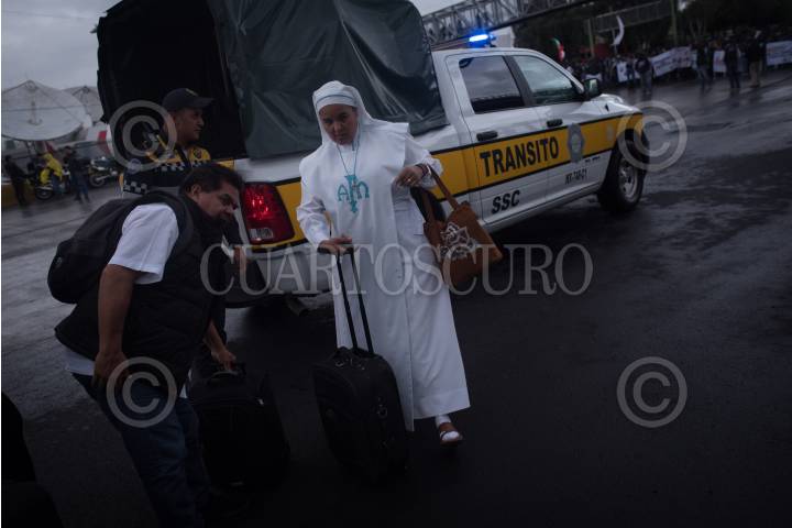 CIUDAD DE MÉXICO, 04JULIO2019.-María Teresa Torres Coronado, supuesta infiltrada del gobierno de la ciudad llegó al Centro de Mando mientras se realizaba a una negociación con Benjamín Grajeda Regalado, secretario de la División de Gendarmería de la Policía Federal (PF), poco después elementos de la PF la retiraron de las instalaciones FOTO: GRACIELA LÓPEZ /CUARTOSCURO.COM