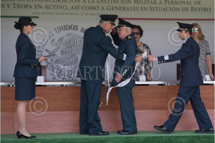 CIUDAD DE MÉXICO, 22MAYO2018.- Salvador Cienfuegos Zepeda, secretario de la Defensa Nacional, encabezó la ceremonia de Condecoración a la Distinción Militar, en la que se reconoció a 23 generales que se encuentran en la honrosa situación de retiro, además 6 generales, 3 jefes, 3 oficiales y 7 de tropa en servicio activo, siendo un total de 42 militares recompensados. FOTO: MARIO JASSO /CUARTOSCURO.COM
