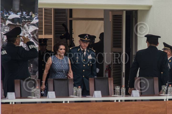 CIUDAD DE MÉXICO, 06JUNIO2019.- Luis Cresencio Sandoval González, Secretario de la Defensa Nacional, en compañía de su esposa, encabezó la “Ceremonia de Imposición de condecoraciones y reconocimientos a Generales que pasaron a situación de retiro”, llevada a cabo en la explanada del Heroico Colegio Militar. FOTO: MARIO JASSO /CUARTOSCURO.COM