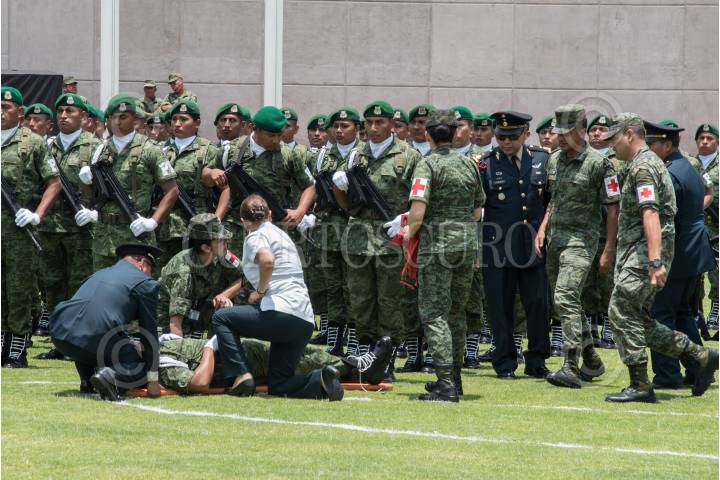 CIUDAD DE MÉXICO, 08JUNIO2018.- Salvador Cienfuegos Zepeda, secretario de la Defensa Nacional, encabezó la entrega de la Condecoración “Distinción Militar” a personal de Generales, Jefes, Oficiales y Tropa en activo así como a Generales que se encuentran en situación de retiro. Durante la ceremonia, un elemento del ejército sufrió un desmayo, supuestamente por las altas temperaturas, el elemento fue atendido por personal médico. FOTO: MARIO JASSO /CUARTOSCURO.COM