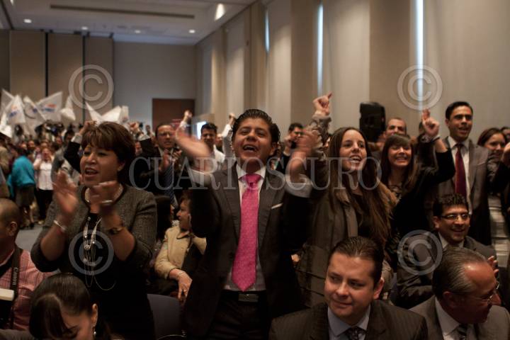 MÉXICO, D.F., 08DICIEMBRE2011.- Simpatizantes de los aspirantes presidenciales mostraron su apoyo en el Tercer Foro "Transformando la Política y generando bienes públicos", organizado por la Fundación Preciado Hernández, que se realizó en el auditorio Manuel Gómez Morín de la sede nacional del blanquiazul. FOTO: MOISÉS PABLO/CUARTOSCURO.COM