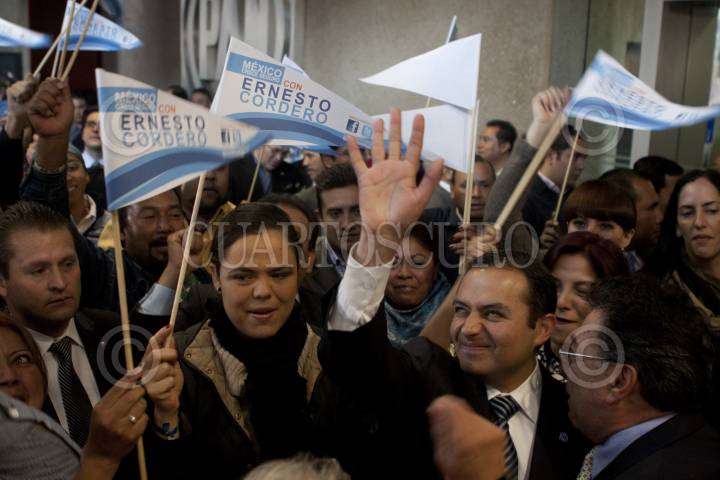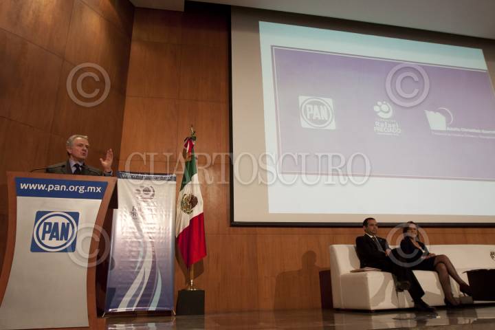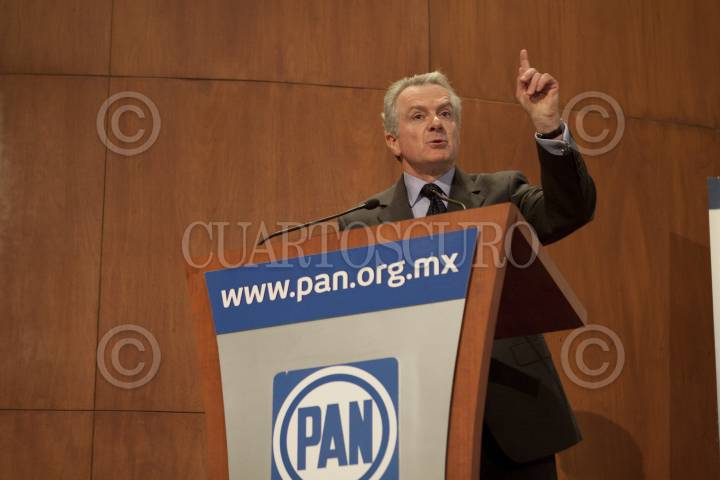 MÉXICO, D.F., 08DICIEMBRE2011.- El panista Ernesto Cordero, aspirante a la presidencia de la República, participó en el Tercer Foro "Transformando la Política y generando bienes públicos", organizado por la Fundación Preciado Hernández, que se realizó en el auditorio Manuel Gómez Morín de la sede nacional del blanquiazul. FOTO: MOISÉS PABLO/CUARTOSCURO.COM