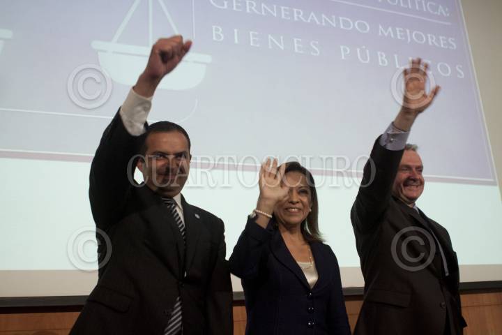 MÉXICO, D.F., 08DICIEMBRE2011.- Los panistas Santiago Creel, Ernesto Cordero y Josefina Vázquez Mota, participaron en el Tercer Foro "Transformando la Política y generando bienes públicos", organizado por la Fundación Preciado Hernández, que se realizó en el auditorio Manuel Gómez Morín de la sede nacional del blanquiazul. FOTO: MOISÉS PABLO/CUARTOSCURO.COM