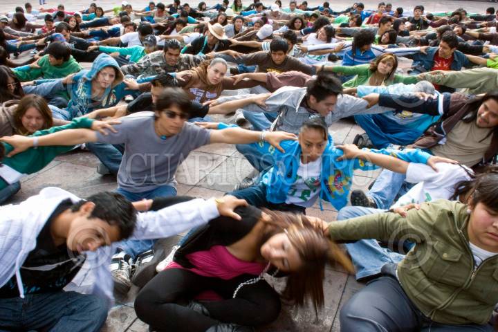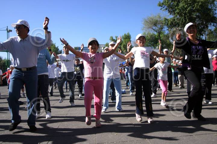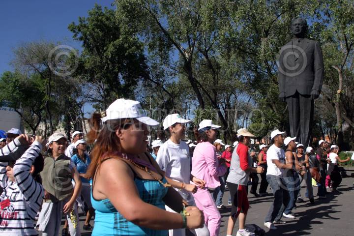 MÉXICO, D.F., 14MARZO2010.- Con el propósito de generar una cultura de la activación deportiva para combatir obesidad, más de mil jóvenes del Programa Prepa Sí participaron este domingo en el evento “Bailando con Prepa Sí se mueve la gente”, organizado por la Secretaría de Educación capitalina. FOTO: CUARTOSCURO.COM