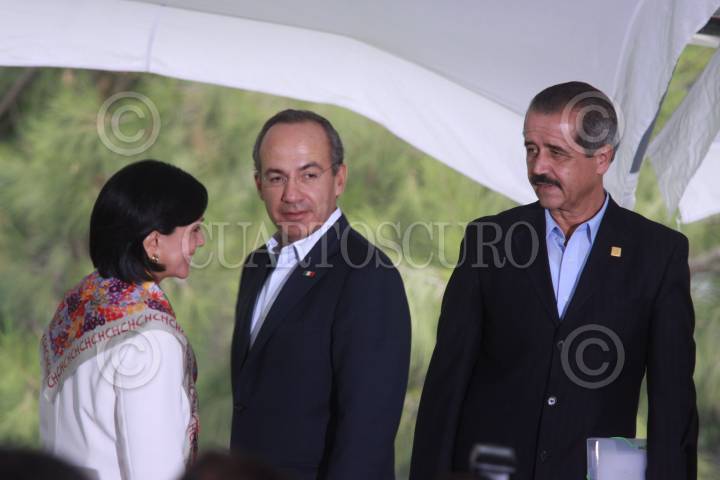 MÉXICO, D.F., 11MAYO2009.- Amalia Garcia Gobernadora del estado de Zacatecas y Felipe Calderón Hinojosa Presidente de México durante la presentación del mapa del genoma de los mexicanos, realizado en el monumento Francisco I.Madero de la residencia oficial de los Pinos FOTO:SÁSHENKA GUTIÉRREZ/CUARTOSCURO.COM