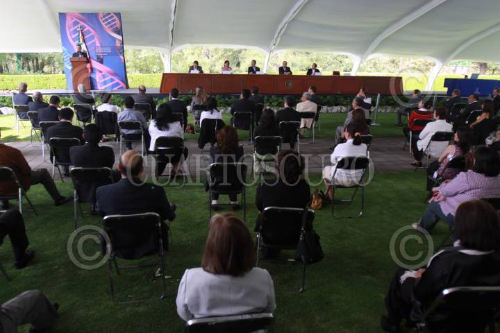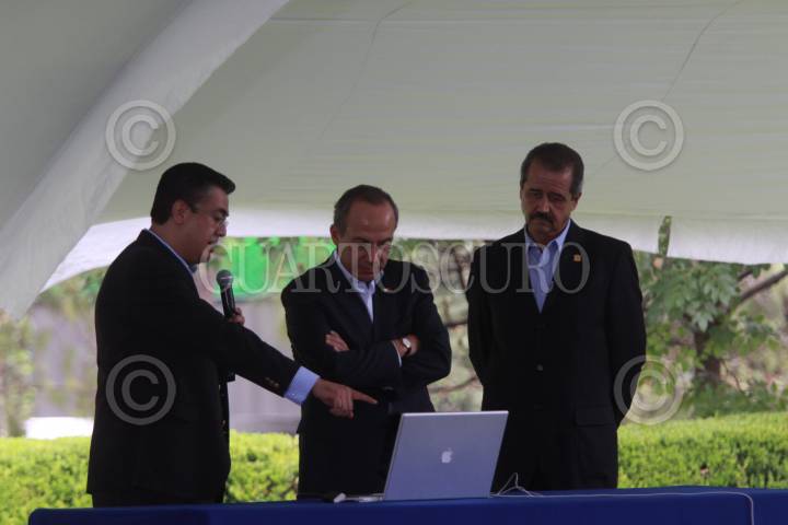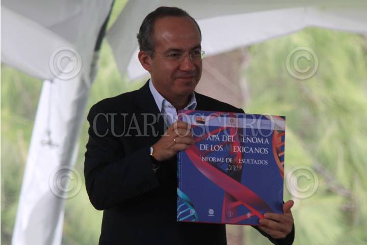 MÉXICO, D.F., 11MAYO2009.- Gerardo Jimenez Director del Instituto Nacional de Medicina Genomica de la Secretaria de Salud , Felipe Calderon Hinojosa presidente de México, José Ángel Cordova secretario de Salud inaguran el mapa genoma de los mexicanos. FOTO:SÁSHENKA GUTIÉRREZ/CUARTOSCURO.COM