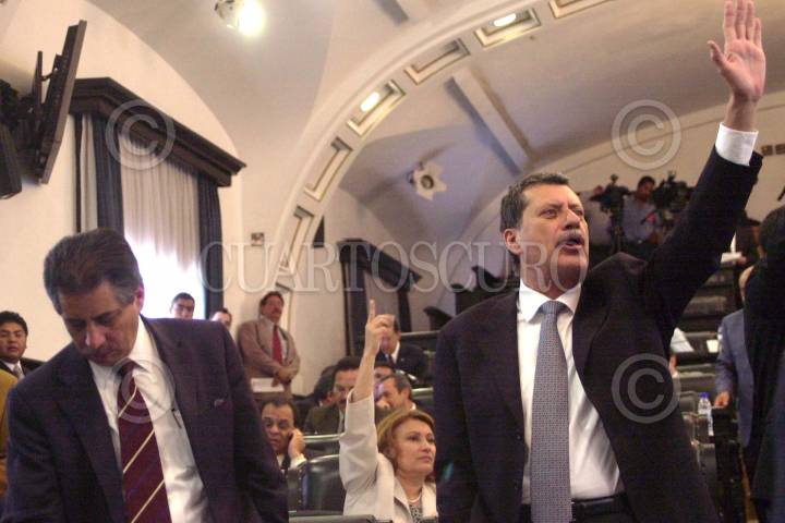 México D.F 27 Abril 2004.- Jesús Ortega del PRD y Enrique Jackson del PRI realizan su voto durante la sesión del Senado de la república en donde los puntos de acuerdo del día fue el genoma humano como vía para mejorar la salud. FOTO: Eunice Adorno/CUARTOSCURO.COM