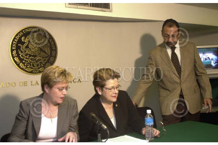 México D.F 27 Abril 2004.- Los priístas Giorgina Trujillo, Laura Alicia Garza y Carlos Rojas dieron una conferencia de prensa para hablar del genoma humano. FOTO: Eunice Adorno/CUARTOSCURO.COM