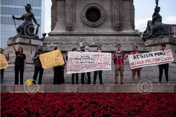 Integrantes de organizaciones sociales, así como ciudadanos a título individual solidarios con la situación política que atraviesa Perú y el líder Pedro Castillo, se dieron cita en el Ángel de la Independencia para exigir la autonomía política de Perú, así como para mostrar su apoyo a Castillo. De los alrededor de quince manifestantes, alrededor de la mitad eran peruanos.