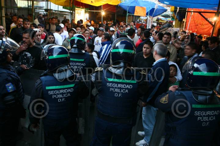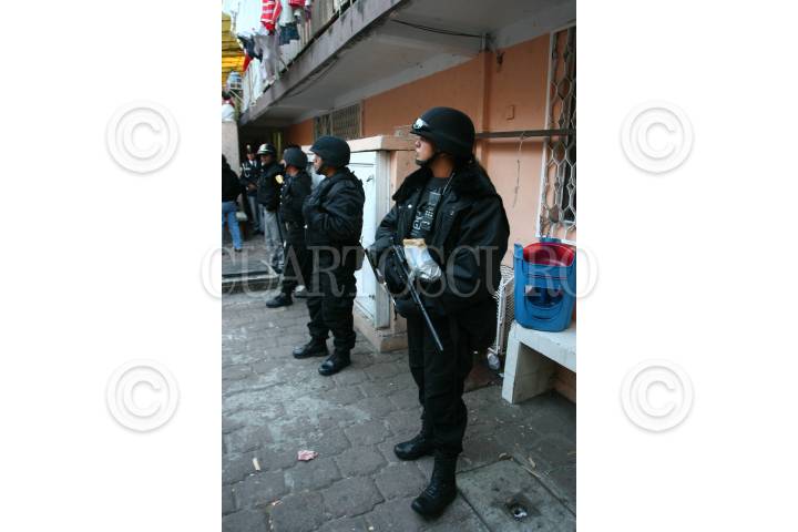 MÉXICO D.F., 21VOVIEMBRE2008.- Elementos del grupo especial de la procuraduria capitalina, de los denominados GERIS, elementos ministeriales, policias capitalinos y granaderos del D.F., realizaron un operativo en vecindades de la calle Manuel Doblado en el barrio de tepito, para catear algunos inmuebles donde se almacenaban bebidas adulteradas. FOTO: SAÚL LÓPEZ/CUARTOSCURO.COM
