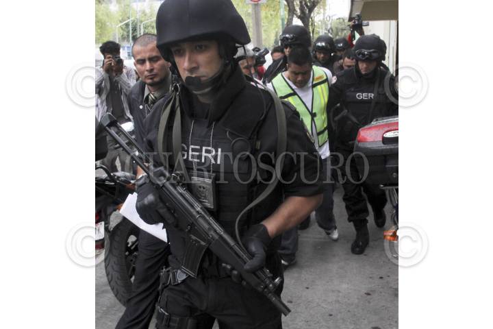 MÉXICO, D.F., 21JULIO2010.- Elementos de Fuerza de tarea de la SSP y del grupo GERIS de la procuraduria capitalina, resguardaron las inmediaciones de la agencia 50, después de la captura de tres presuntos sujetos que participaron en un secuestro y que portaban armas de alto calibre. FOTO: SAÚL LÓPEZ/CUARTOSCURO.COM