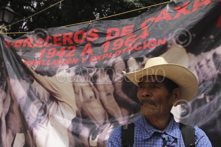 OAXACA, OAXACA, 13SEPTIEMBRE2011.- Un grupo de aproximadamente 60 exbraseros, realizaron una protesta a las afueras del Palacio de Gobierno para exigir a las autoridades estatales el pago de apoyos, mismos que dijeron el ex secretario de Desarrolo Social y Humano, Carlos Altamirano comprometió. FOTO: ARTURO PEREZ ALFONSO/CUARTOSCURO.COM