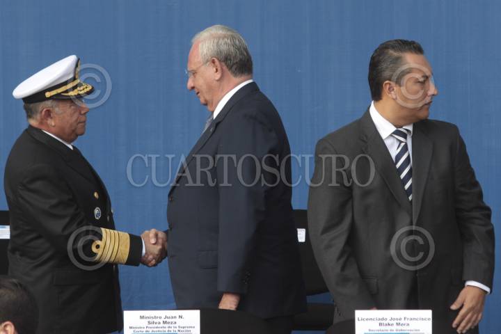 MÉXICO D.F., 16SEPTIEMBRE2011.- Francisco Saynez, Secretario de Marina junto a Juan N Silva, Ministro de la SCJN y Francisco Blake Mora, Secretario de Gobernacion durante la ceremonia del CCI Aniversario del Inicio de la Gesta de Independencia que se realizó en la columna del Ángel de la Independencia. FOTO: ENRIQUE ORDÓÑEZ/CUARTOSCURO.COM
