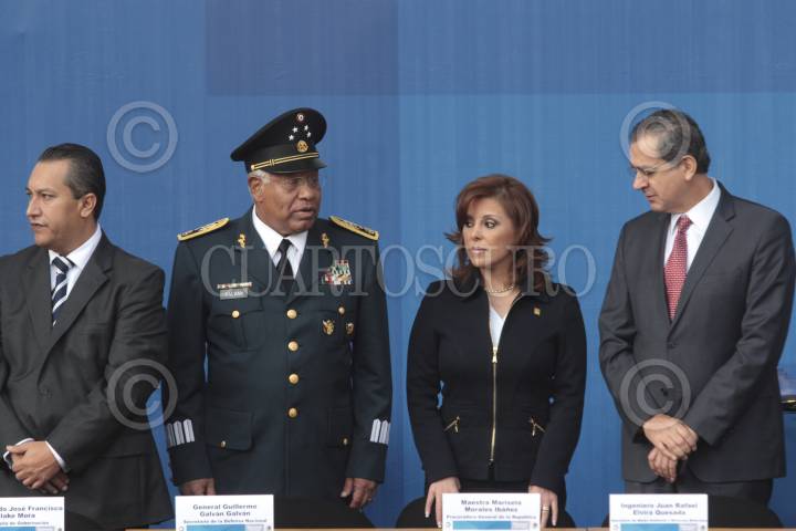 MÉXICO D.F., 16SEPTIEMBRE2011.- Francisco Blake Mora, Secretario de Gobernacion junto a Guillermo Galvan Galvan, Secretario de la Defensa; Marisela Morales, Procuradora de la Republica y Juan Rafael Elvira Quesada, Secretario de la SEMARNAT durante la ceremonia del CCI Aniversario del Inicio de la Gesta de Independencia que se realizó en la columna del Ángel de la Independencia. FOTO: ENRIQUE ORDÓÑEZ/CUARTOSCURO.COM