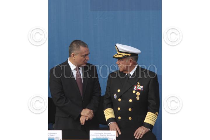 MÉXICO D.F., 16SEPTIEMBRE2011.- Genaro Garcia Luna, Secretario de Seguridad Publica junto a Francisco Saynez, Secretario de Marina durante la ceremonia del CCI Aniversario del Inicio de la Gesta de Independencia que se realizó en la columna del Ángel de la Independencia. FOTO: ENRIQUE ORDÓÑEZ/CUARTOSCURO.COM