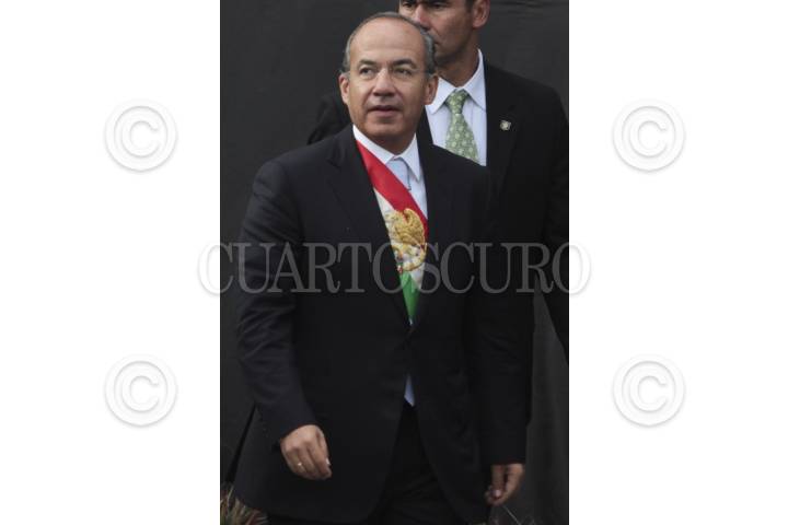 MÉXICO D.F., 16SEPTIEMBRE2011.- Felipe Calderon, Presidente de México durante la ceremonia del CCI Aniversario del Inicio de la Gesta de Independencia que se realizó en la columna del Ángel de la Independencia. FOTO: ENRIQUE ORDÓÑEZ/CUARTOSCURO.COM