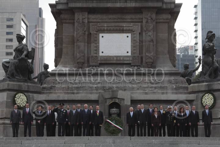 MÉXICO D.F., 16SEPTIEMBRE2011.- Marisela Morales, Produradora General de la Republica junto a Juan Rafael Elvira Quesada Secretario de la SEMARNAT; Jose Antonio Meade, Secretario de Hacienda; Bruno Ferrari, Secretario de Economia y Dionisio Perez, Secretario de Comunicaciones y Transporte durante la ceremonia del CCI Aniversario del Inicio de la Gesta de Independencia que se realizó en la columna del Ángel de la Independencia. FOTO: ENRIQUE ORDÓÑEZ/CUARTOSCURO.COM