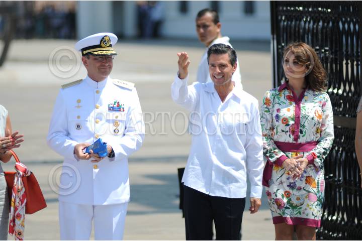 VERACRUZ, VERACRUZ, 21ABRIL2014.- Francisco Vidal Soberón Saenz, Secretario de Marina Armada de México; Enrique Peña nieto, presidente de México; y Angélica Rivera de Peña, esposa del primer mandatario mexicano; inaguraron el museo Naval en el marco de la celebración de la gesta heroica. FOTO: IVÁN STEPHENS /CUARTOSCURO.COM