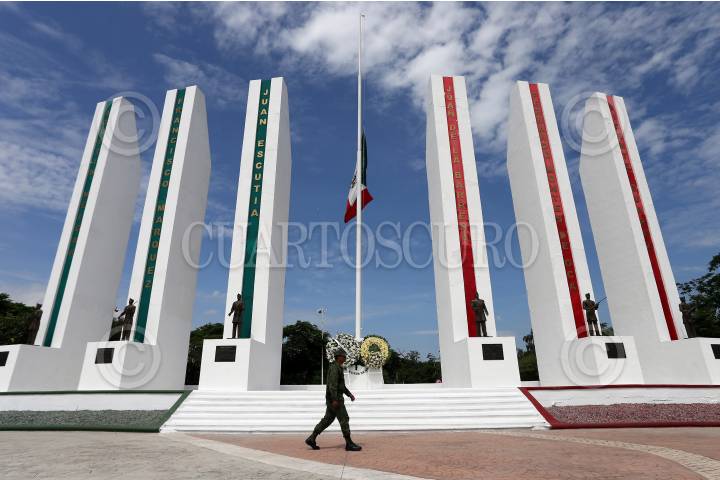 TUXTLA GUTIERREZ, CHIAPAS, 13SEPTIEMBRE2017.- Con un minuto de silencio por los fallecidos del sismo del pasado 07 de septiembre, autoridades estatales conmemoraron el 170 aniversario de la gesta heroica de la batalla de Chapultepec. FOTO: JACOB GARCIA /CUARTOSCURO.COM