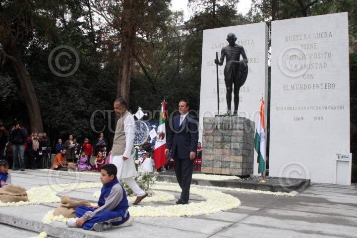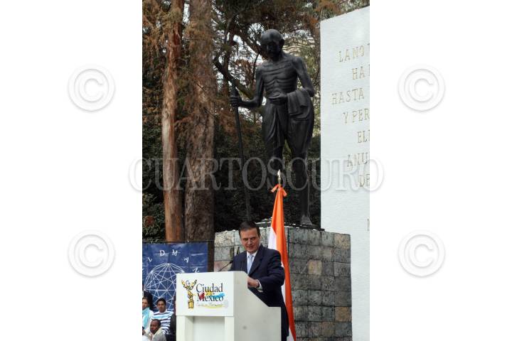 MÉXICO, D.F., 30ENERO2010.- Marcelo Ebrard Casaubón, Jefe de Gobierno, encabezó la inauguración de la restauración a la que fue sometido el monumento a Mohandas Karamchand Ghandi, ubicado en la plaza del mismo nombre en Paseo de la Reforma. FOTO: CUARTOSCURO.COM