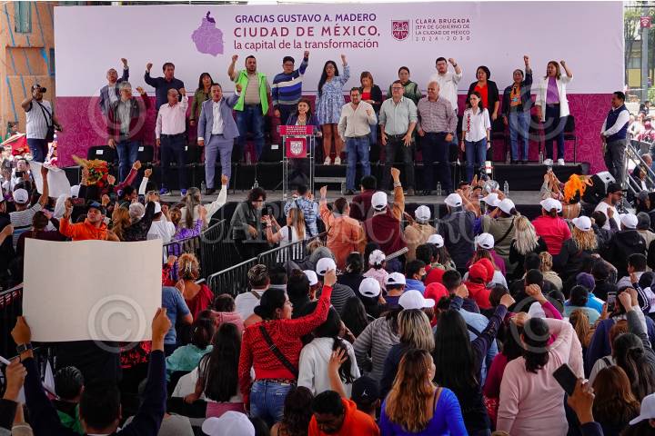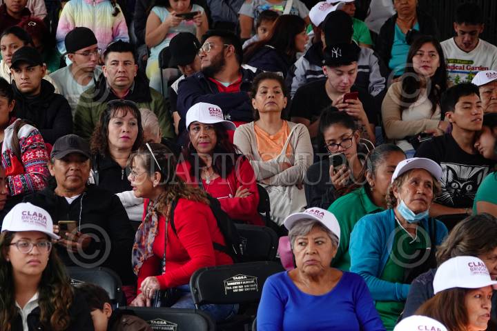 CIUDAD DE MÉXICO, 17AGOSTO2024.- Clara Brugada, jefa de Gobierno electa, encabezó asamblea informativa en el Jardín Hidalgo en Coyoacán. FOTO: PRENSA CLARA BRUGADA/CUARTOSCURO.COM