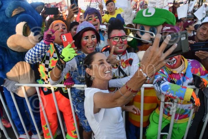TEXCOCO, ESTADO DE MÉXICO, 11MAYO2024.- Claudia Sheinbaum, candidata a la presidencia por la coalición "Sigamos Haciendo Historia (PT, PVEM y Morena), durante el mitin de campaña realizado en las Instalaciones de la Feria del Caballo. FOTO: MARIO JASSO/CUARTOSCURO.COM