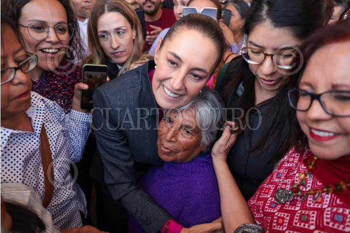 HECELCHAKÁN, CAMPECHE, 19OCTUBRE2024.- Claudia Sheinbaum, presidenta de México, durante su visita al módulo de registro al programa "Pensión Mujeres Bienestar". FOTO: PRESIDENCIA/CUARTOSCURO.COM
