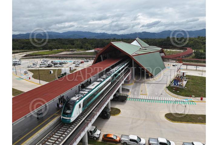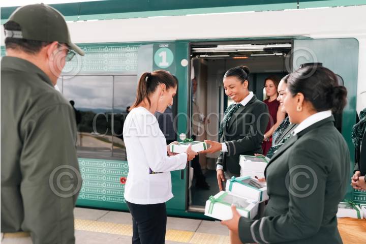 PALENQUE, CHIAPAS, 14DICIEMBRE2024.- Claudia Sheinbaum, presidenta de México, viajó en el Tren Maya de la estación Palenque, Chiapas a Chetumal, Quintana Roo, donde mañana encabezará el primer aniversario de esta gran obra e inauguraremos al público su último tramo. FOTO: PRESIDENCIA/CUARTOSCURO.COM