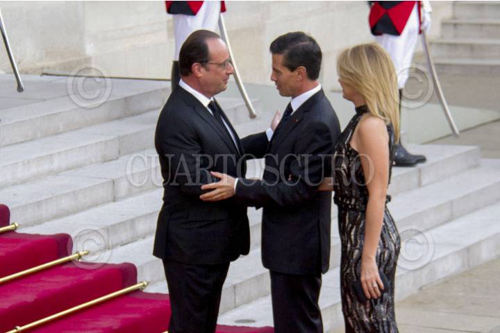 PARÍS, FRANCIA, 16JULIO2015.- Durante la Cena de Estado que el Presidente Francois Hollande ofreció al Presidente Enrique Peña Nieto, así como a su esposa, Angélica Rivera de Peña, ambos Mandatarios reiteraron su interés por estrechar los lazos de amistad y de cooperación entre México y Francia. FOTO: PRESIDENCIA /CUARTOSCURO.COM