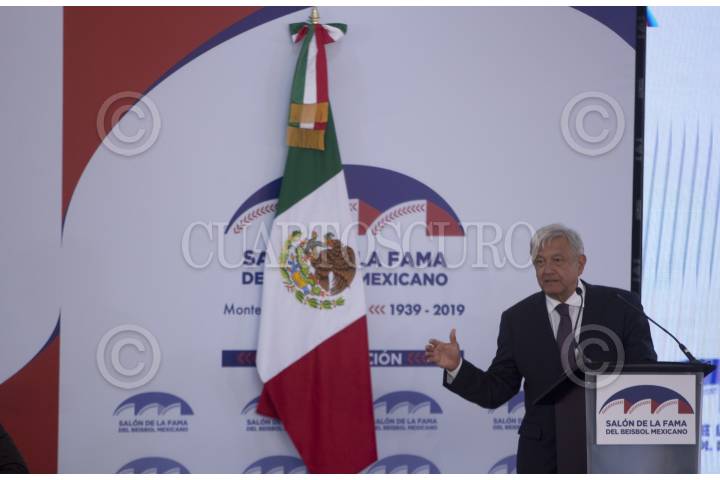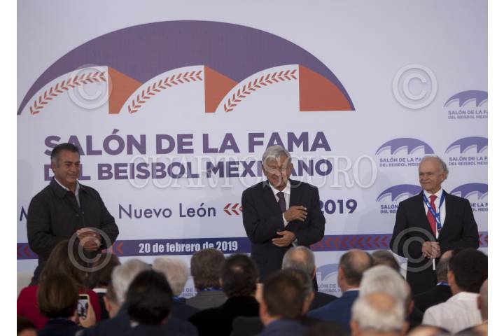MONTERREY, NUEVO LEÓN, 20FEBRERO2019.- El Presidente Andrés Manuel López Obrador inauguró el Salón de la Fama del Beisbol, dentro de las instalaciones del Parque Fundidora. Al evento acudieron el empresario Alfredo Harp Helú y Alfonso Romo. FOTO: GABRIELA PÉREZ MONTIEL /CUARTOSCURO.COM