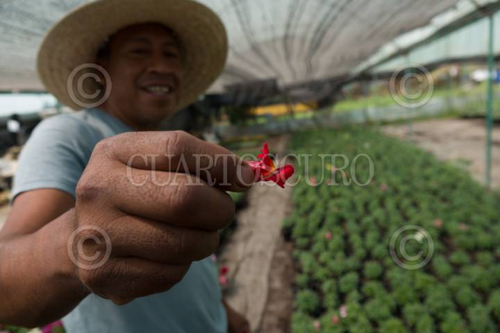 Antonio García demuestra porque recibe el nombre "perrito", flor que será enviada a la venta en el mercado de flores de la alcaldía Xochimilco en aras del Día de las Madres