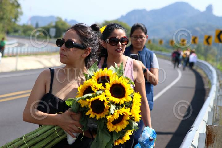 Marcha de mujeres para protestar por la muerte de la joven Ariadna Fernanda, en la autopista La Pera-Cuautla, donde el pasado 30 de octubre fue localizado.