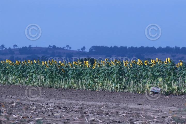 Aspectos de la recolección de botones sin florecer de girasol que serán entregadas para la grabación de una serie televisiva.