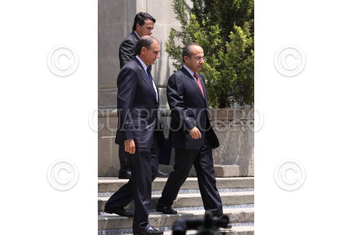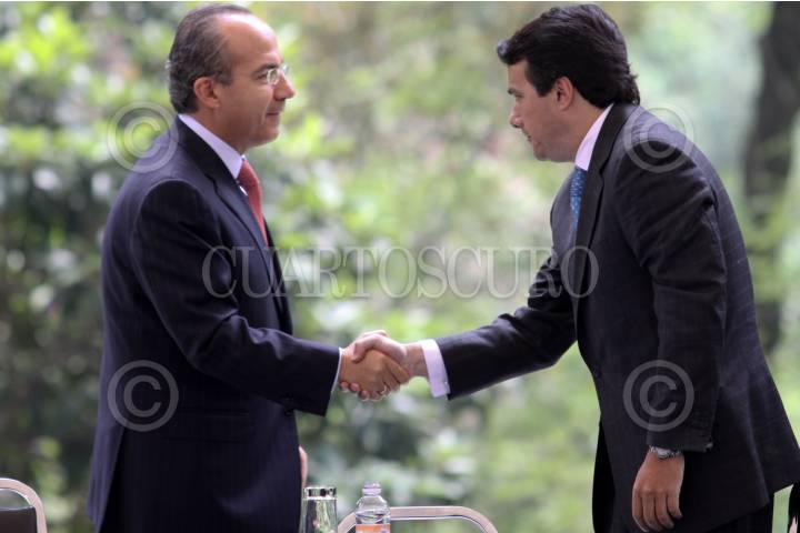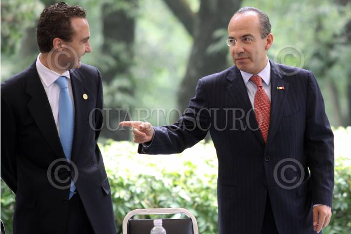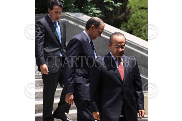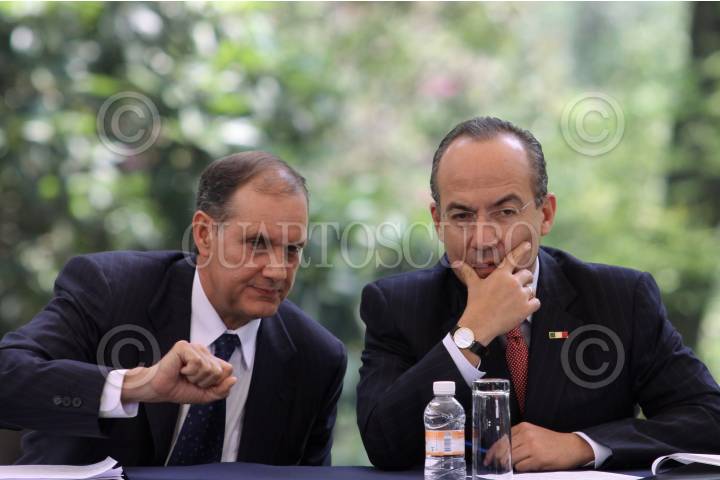 MÉXICO, D.F., 20MAYO2009.- Felipe Calderón Hinojosa, Presidente de México y Gerardo Ruíz Mateos, Secretario de Economía, durante el anuncio de inversión del Consejo Ejecutivo de Empresas Globales, en la residencia oficial de Los Pinos. FOTO: MOISÉS PABLO/CUARTOSCURO.COM