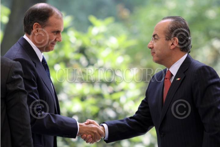 MÉXICO, D.F., 20MAYO2009.- Jesús Madrazo Yris, presidente y director general de Mosanto y Felipe Calderón Hinojosa, Presidente de México, durante el anuncio de inversión del Consejo Ejecutivo de Empresas Globales, en la residencia oficial de Los Pinos. FOTO: MOISÉS PABLO/CUARTOSCURO.COM