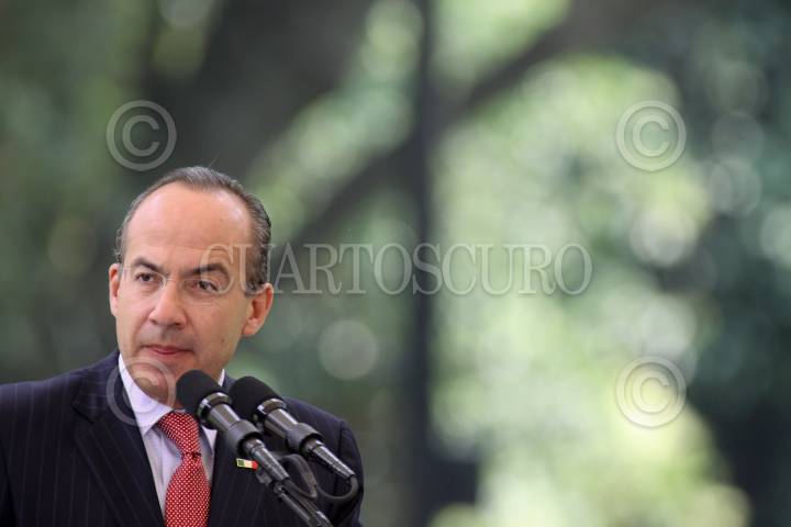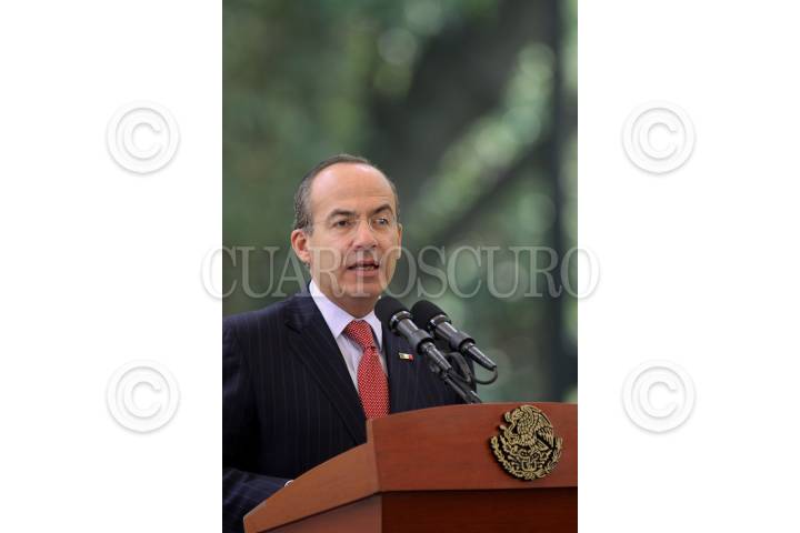 MÉXICO, D.F., 20MAYO2009.- Felipe Calderón Hinojosa, Presidente de México, durante el anuncio de inversión del Consejo Ejecutivo de Empresas Globales, en la residencia oficial de Los Pinos. FOTO: MOISÉS PABLO/CUARTOSCURO.COM