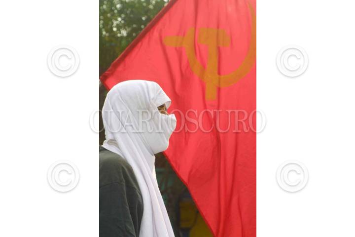 Monterrey, N.L 10Enero de 2004.- Integrantes de un grupo de manifestantes procedentes del D.F. y de distintos estados del sur del país, llegaron a la ciudad de Monterrey, donde se manifestaran con motivo de la Cumbre de las Americas. FOTO: Garuda Daza/CUARTOSCURO.COM