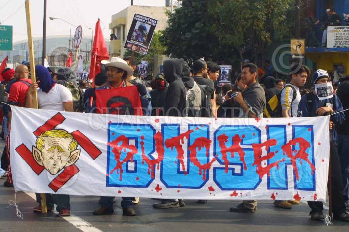 Monterrey, Nuevo León 13ENERO2004.- Las organizaciones continuaron con sus protestas en repudio a la Cumbre de Américas, el blanco de las críticas de los manifestantes se han caracterizado por ir dirigidas en contra del presidente de los EE. UU, George Bush. Foto: Jorge Lopez/CUARTOSCURO.COM