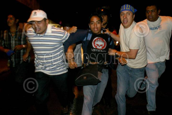 Gudalajara, Jalisco, 27 MAYO 2004.- Enfrentamiento entre antimotines y globalifóbicos en el parque Revolución, durante la cumbre de América Latina y la Unión Europea III. FOTO: Marco Aurelio Vargas/CUARTOSCURO.COM