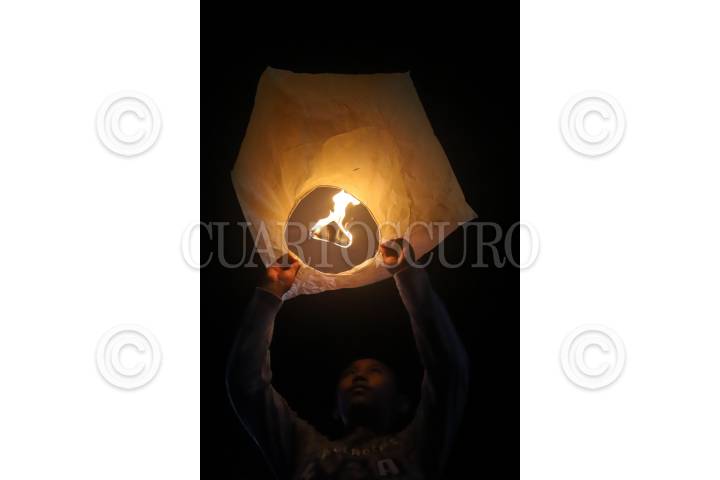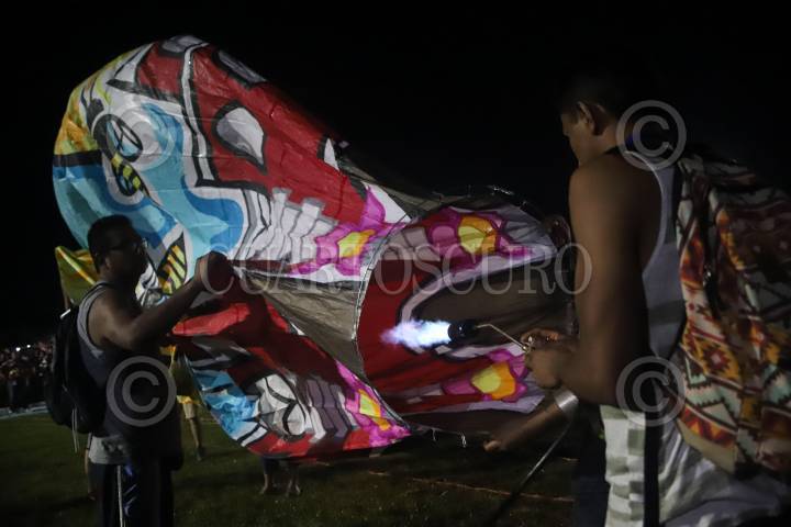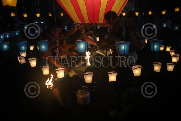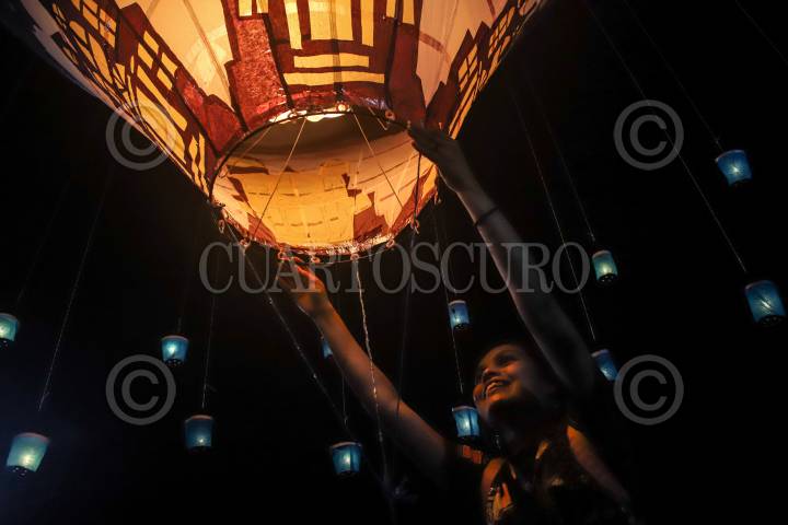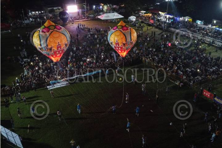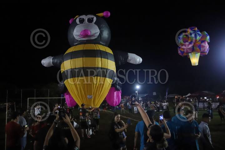 Figuras con distintos personajes y temáticas se elevaron por el cielo durante el inicio del "Segundo Festival del Globo Maya de Tahmek" en el que participaron artesanos de México y el país invitado Colombia