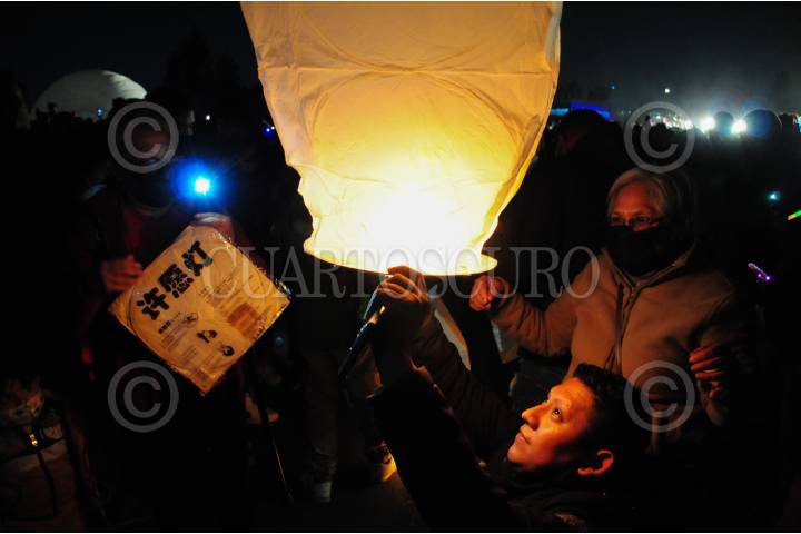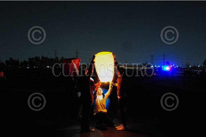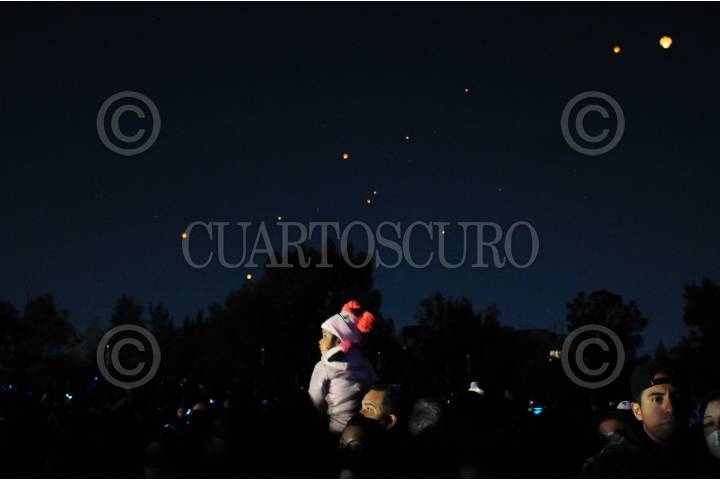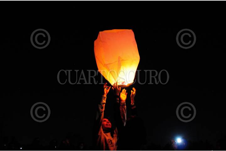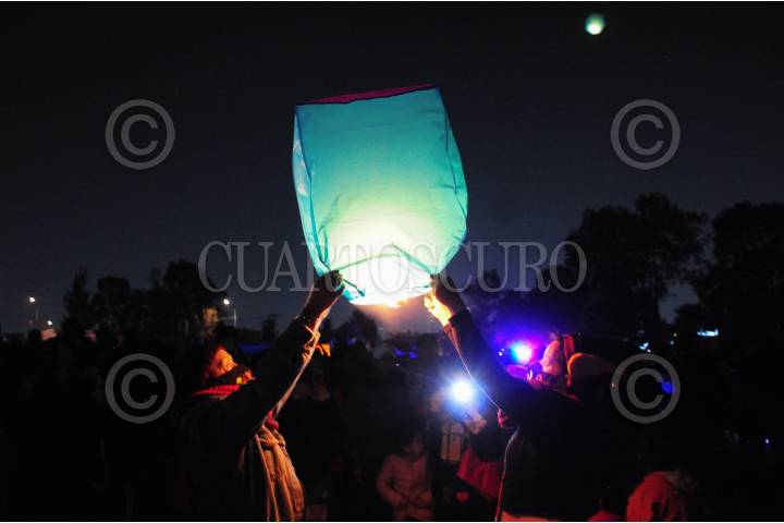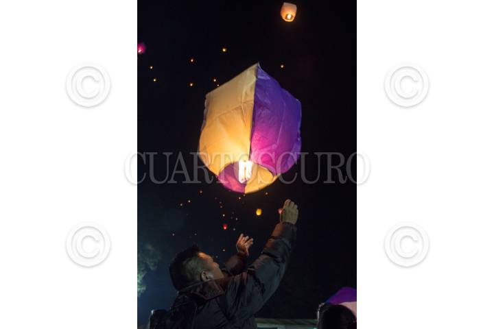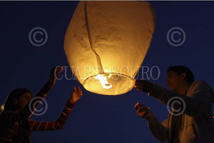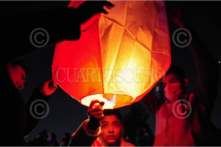 Encendido de un globo de cantoya en el Parque Cuitláhuac.