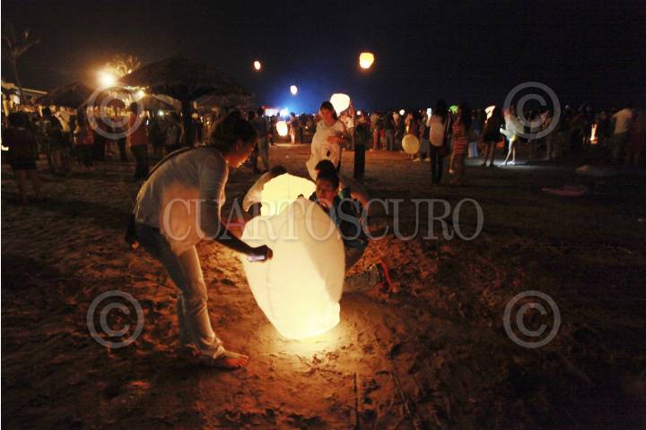 BOCA DEL RÍO, VERACRUZ, 28JUNIO2014.- Cerca de un millar de personas participó la noche de este sábado en la gran suelta de globos de cantoya en las playas de Boca del Río. FOTO: FÉLIX MÁRQUEZ / CUARTOSCURO.COM
