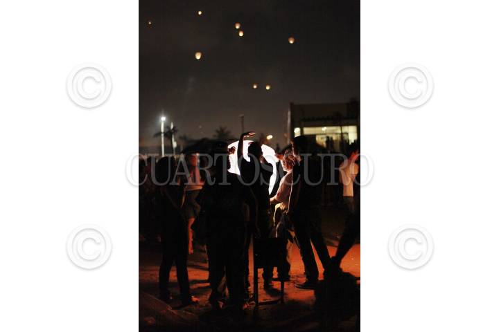 SAN PEDRO CHOLULA, PUEBLA, 18MARZO2012.- Decenas de personas se reunieron en la Plaza de la Concordia de Cholula, para lanzar globos de Cantoya con motivo del equinoccio de Primavera. FOTO: HILDA RÍOS/CUARTOSCURO.COM