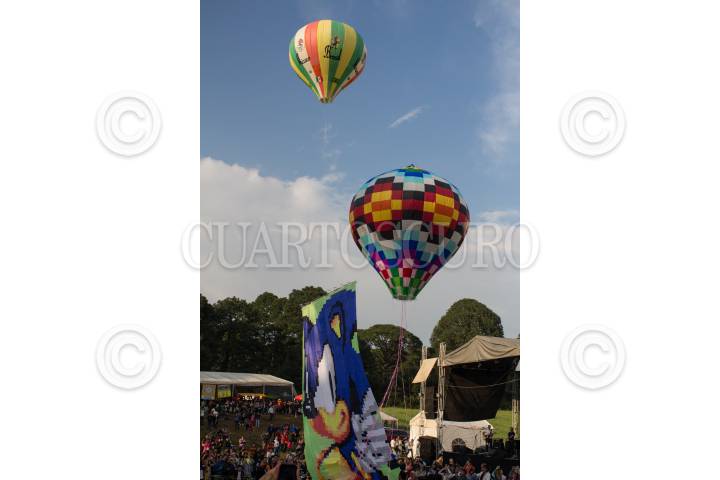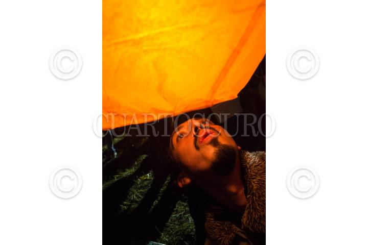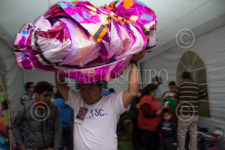 MEXICO, D.F., 21SEPTIEMBRE2014.- El día de ayer inició el 4° Festival Multicultural de Globos de Cantoya, celebrado al sur de la Ciudad de México. Más de 20 mil personas se dieron cita en el Bosque del Ocotal, en la delegación Milpa Alta, para disfrutar del espectáculo de luces y pirotecnia de los globos de papel de china. Esta tradición se remonta hasta tres generaciones en las familias nativas y cada año miles de personas procedentes de varias partes del país y de otras naciones asisten para contemplar los globos monumentales de hasta 10 o 15 metros de altura que participan en este evento, donde la creatividad de los globeros los ha llevado a representar a México en certámenes a nivel nacional e internacional en este ámbito. Al anochecer el festival se vio amenazado por una fuerte lluvia que, sin embargo, cesó rápidamente. FOTO: DAVID POLO /CUARTOSCURO.COM