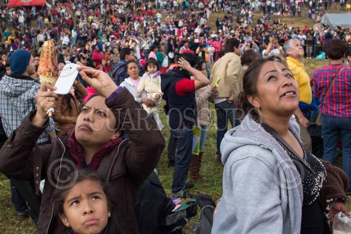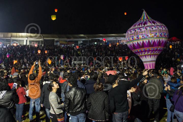 MEXICO, D.F., 21SEPTIEMBRE2014.- El día de ayer inició el 4° Festival Multicultural de Globos de Cantoya, celebrado al sur de la Ciudad de México. Más de 20 mil personas se dieron cita en el Bosque del Ocotal, en la delegación Milpa Alta, para disfrutar del espectáculo de luces y pirotecnia de los globos de papel de china. Esta tradición se remonta hasta tres generaciones en las familias nativas y cada año miles de personas procedentes de varias partes del país y de otras naciones asisten para contemplar los globos monumentales de hasta 10 o 15 metros de altura que participan en este evento, donde la creatividad de los globeros los ha llevado a representar a México en certámenes a nivel nacional e internacional en este ámbito. Al caer la noche los asistentes no dejaban de lanzar globos pequeños, a la par que los globos monumentales se elevaban brillantes en el cielo nublado. FOTO: DAVID POLO /CUARTOSCURO.COM