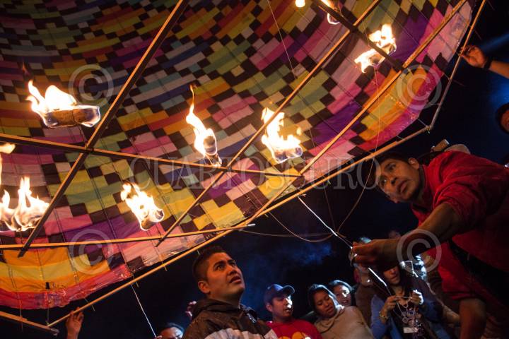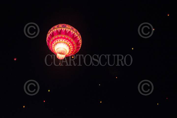 MEXICO, D.F., 21SEPTIEMBRE2014.- El día de ayer inició el 4° Festival Multicultural de Globos de Cantoya, celebrado al sur de la Ciudad de México. Más de 20 mil personas se dieron cita en el Bosque del Ocotal, en la delegación Milpa Alta, para disfrutar del espectáculo de luces y pirotecnia de los globos de papel de china. Esta tradición se remonta hasta tres generaciones en las familias nativas y cada año miles de personas procedentes de varias partes del país y de otras naciones asisten para contemplar los globos monumentales de hasta 10 o 15 metros de altura que participan en este evento, donde la creatividad de los globeros los ha llevado a representar a México en certámenes a nivel nacional e internacional en este ámbito. Los asistentes al festival lanzan sus propios globos, a la vez que otros de grandes dimensiones se elevan en un brillante mosaico. FOTO: DAVID POLO /CUARTOSCURO.COM