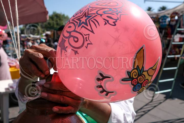 CIUDAD DE MÉXICO, 05ENERO2025.- En vísperas de la llegada de los Reyes Magos, familias compran globos de helio a un costo desde $45 a $80 pesos. Los globos representan el 2 por ciento los plásticos que comen las aves marinas, pero causan el 23 por ciento de las muertes de estos animales por ingesta de plástico. FOTO: GRACIELA LÓPEZ /CUARTOSCURO.COM